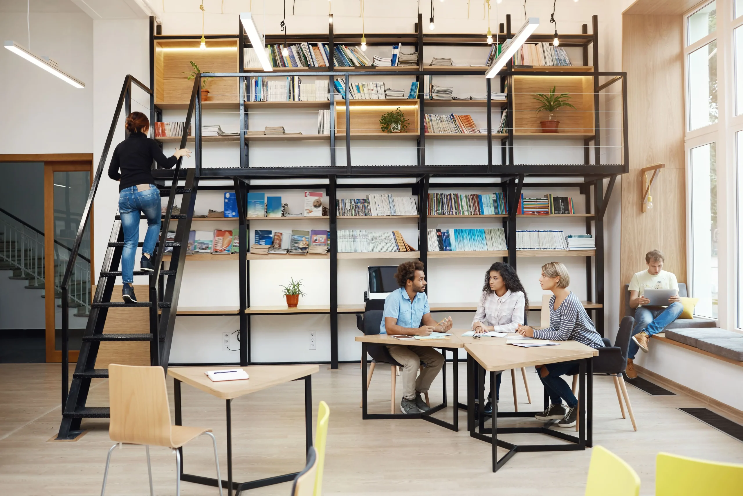 Kantor bersama adalah tempat kerja bersama dengan perusahaan lain yang menyediakan fasilitas seperti internet, printer, dan ruang konferensi.